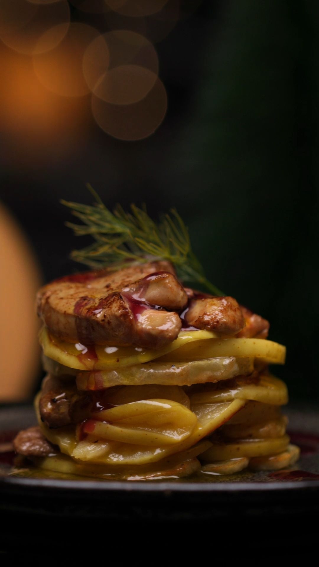 Apple and Foie Mille-feuille with Red Wine Sauce